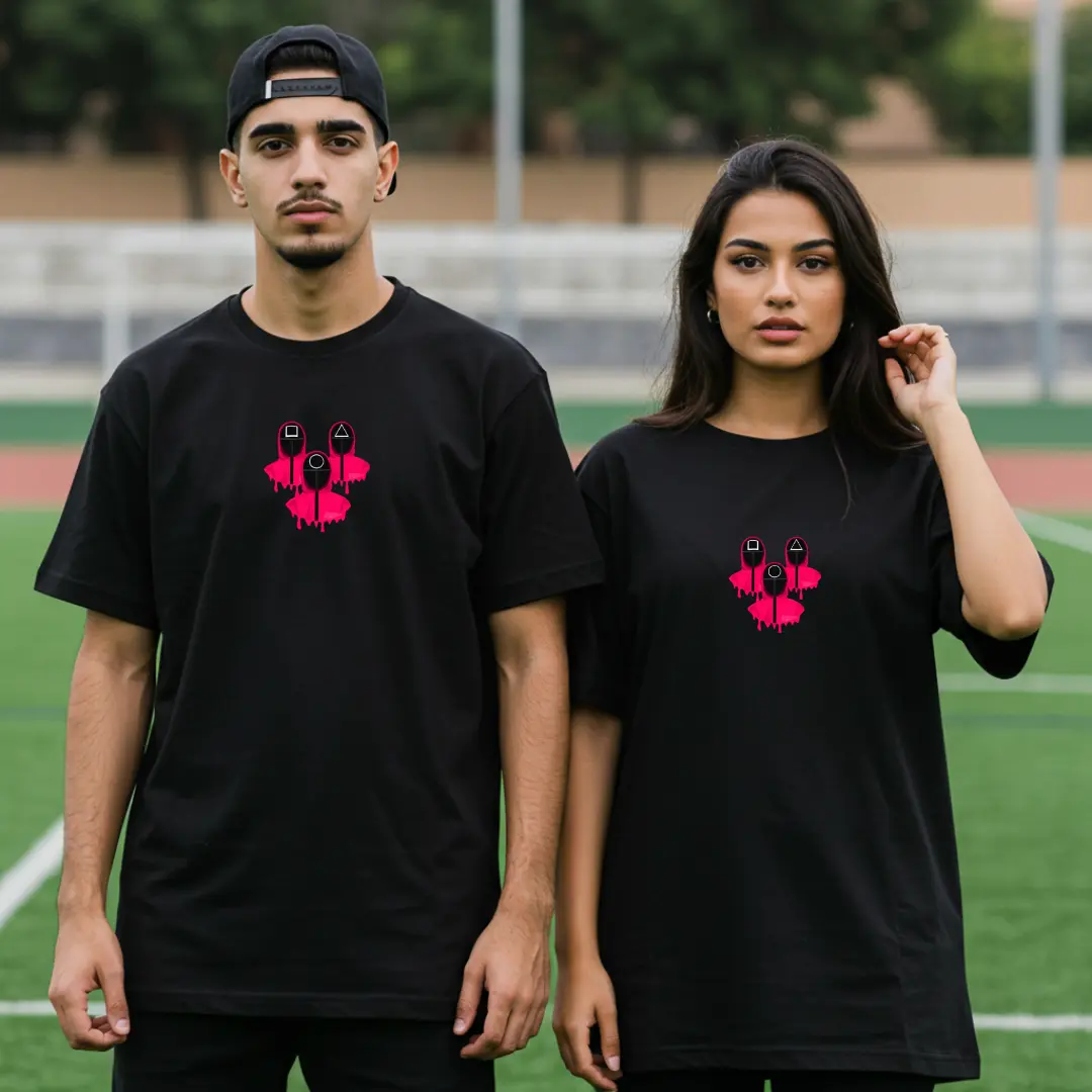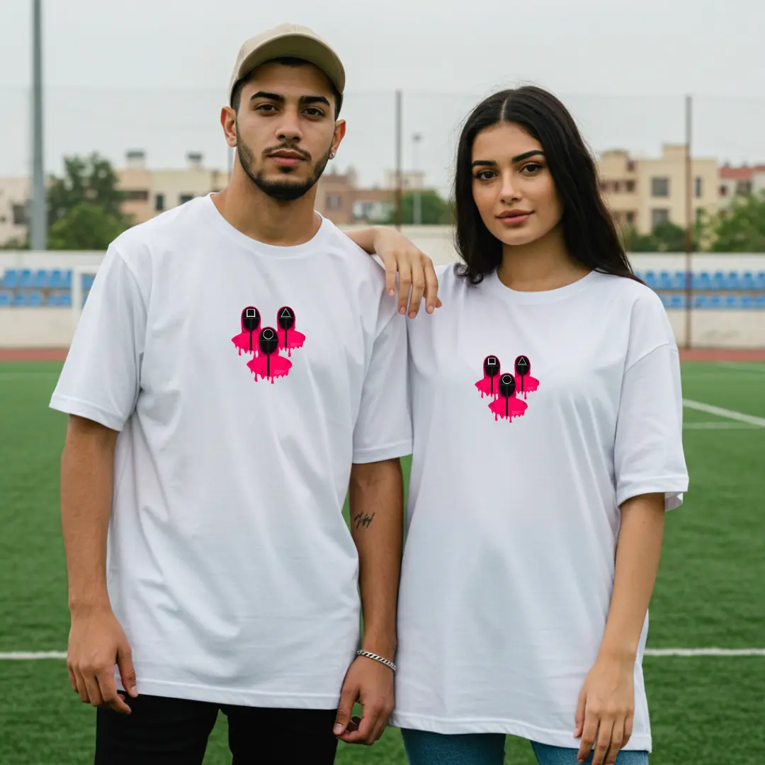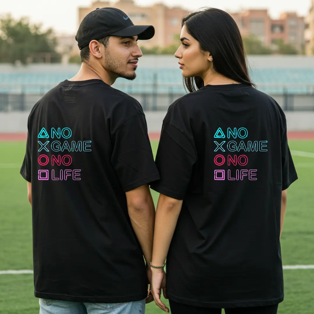 For those who see life as a level to conquer, this oversized T-shirt speaks your truth. The front design showcases the iconic game mask symbols dripping in high-contrast neon pink, while the back completes the message loud and clear: “No Game No Life.” This piece is a tribute to every gamer, strategist, and bold soul who finds meaning in the challenge.