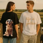 Made from soft, breathable cotton with a roomy oversized cut, this tee is built for laid-back days, dog lovers, and anyone who believes happiness is best shared. Whether you’re walking through the park, chilling at a café, or heading out with friends, the Golden Vibes tee makes sure you stand out with effortless positivity.