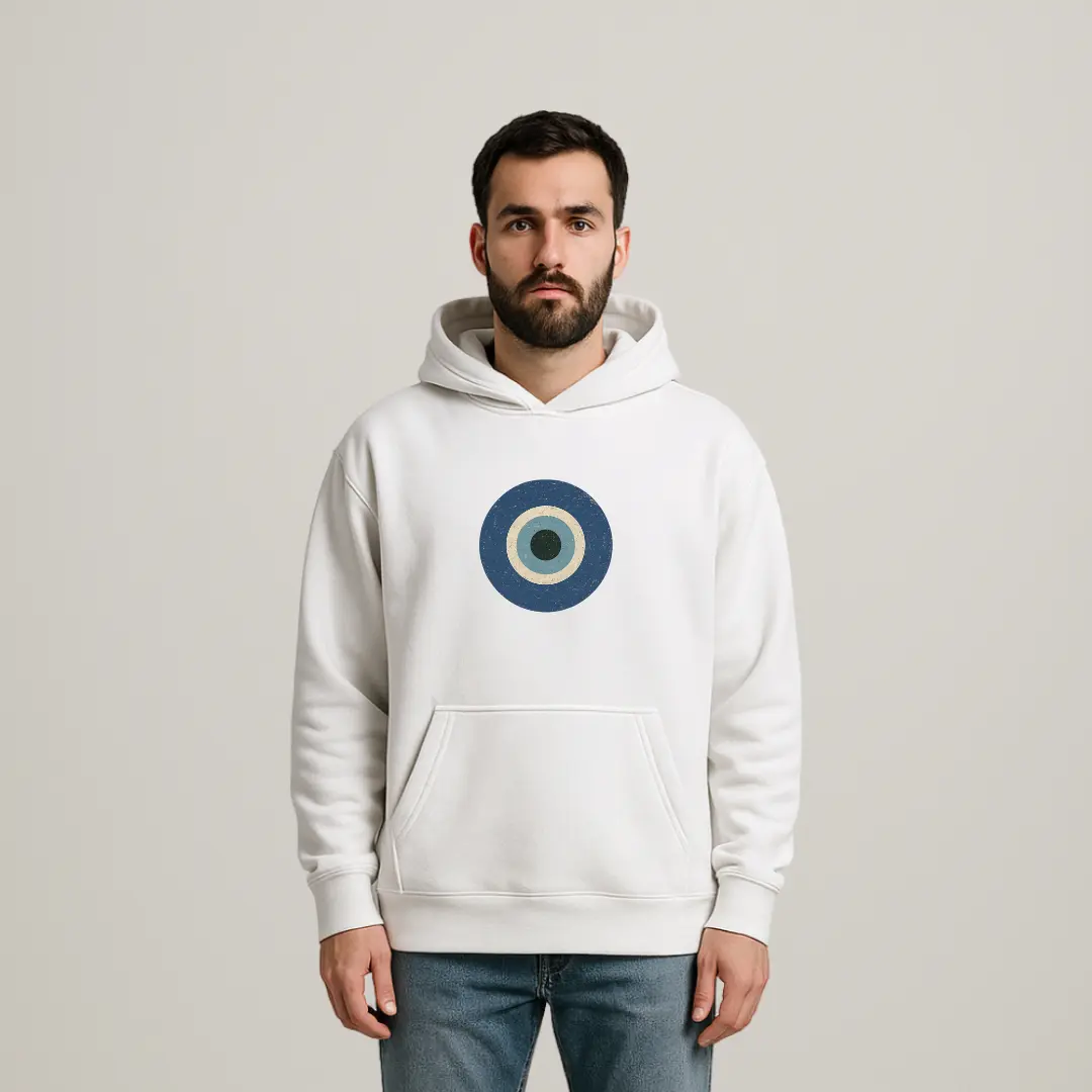 Elevate your casual wardrobe with this stylish white hoodie featuring a minimalist target design. Perfect for everyday wear, it combines comfort with modern flair.
