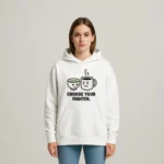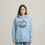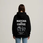 This hoodie combines fun and style with a bold design that showcases a playful rivalry between matcha and coffee. The front features two cartoon faces representing matcha and coffee, with a witty “Choose Your Fighter” slogan, perfect for coffee and tea lovers alike. The back boldly repeats the theme with large, eye-catching text “MATCHA VS COFFEE” and the same cartoon faces, emphasizing the friendly battle between the two beverages. Made from comfortable material, it’s ideal for casual wear and expressing your beverage choice with humor and attitude.