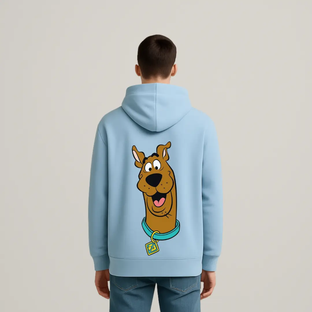 hoodies featuring colorful “Scooby-Doo!” text on the front and a large, vibrant image of Scooby-Doo’s face on the back, perfect for fans of the classic cartoon.