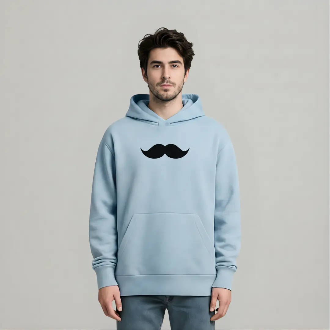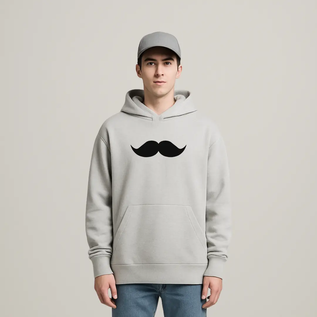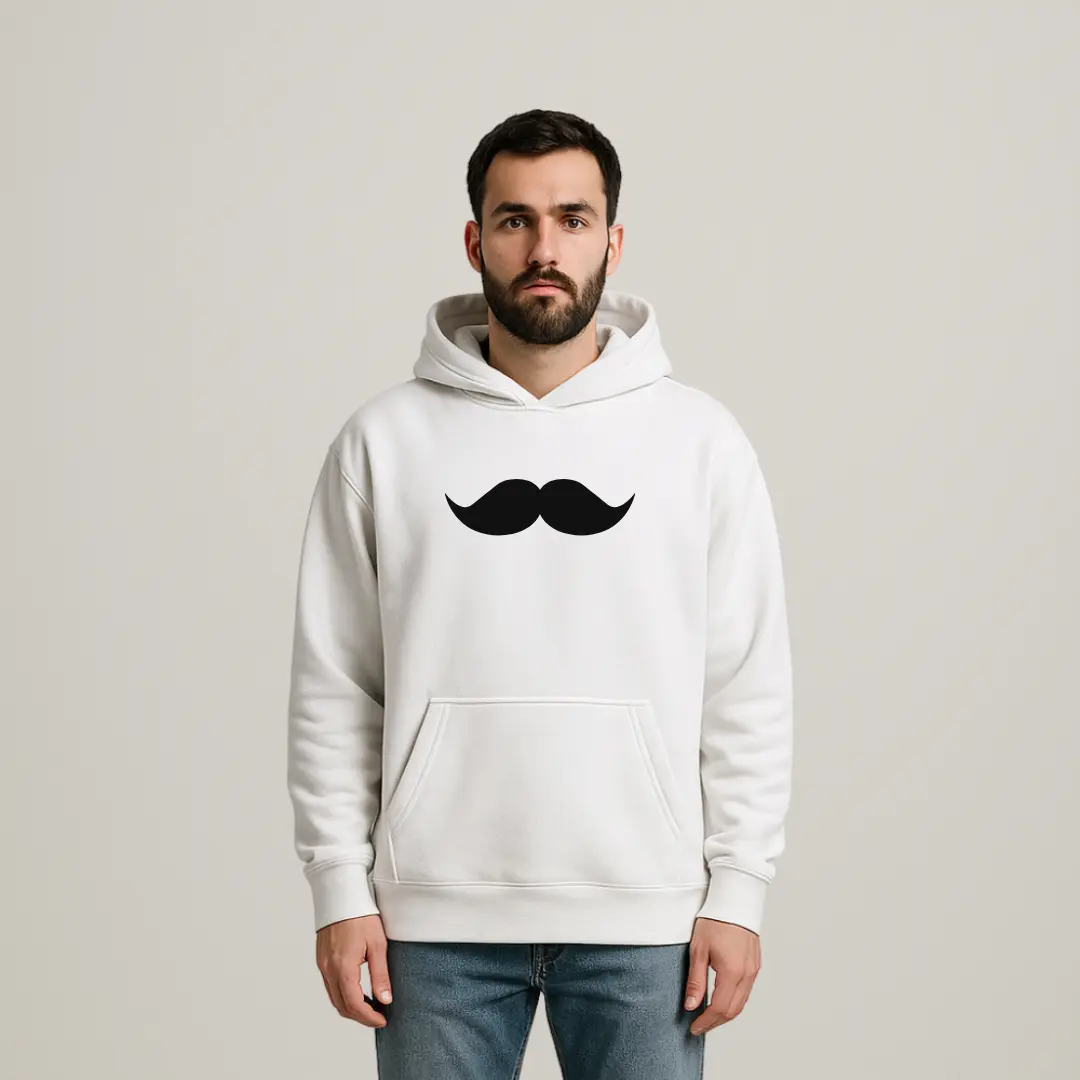 The front showcases a simple, clean mustache icon — a classic symbol of fun, confidence, and dad charm.