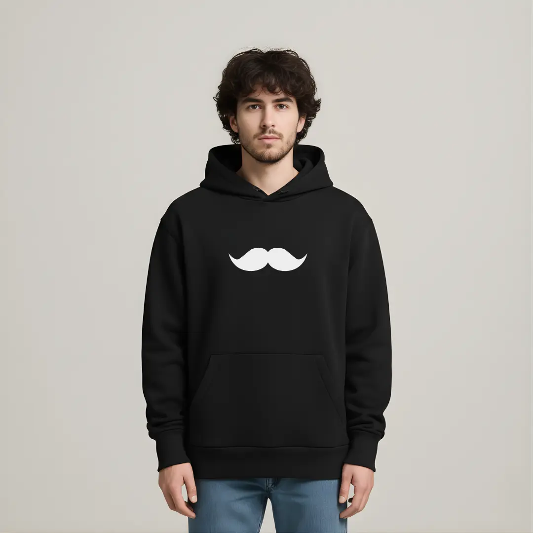 The design uses dynamic typography with a textured finish, making it stand out while keeping it stylish and modern. A small mustache detail at the bottom completes the graphic with a playful touch.