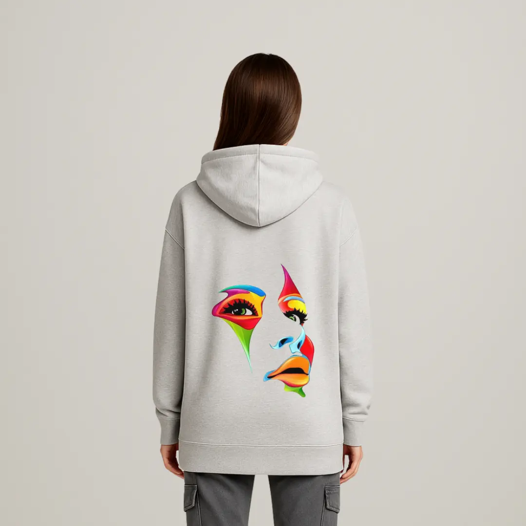 This hoodie combines expressive art with comfort, making it an eye-catching addition to any wardrobe