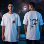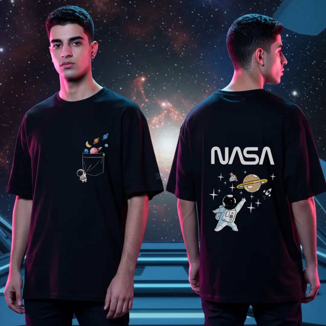 Pocket Galaxy is a playful take on spacewear, with planets and stars spilling out of your pocket and a floating astronaut chillin’ on your back. The bold NASA logo ties it all together, giving this tee that perfect mix of cosmic nostalgia and streetwear fun.