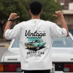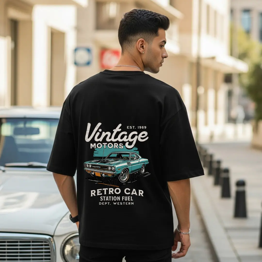 🧼 Print: High-quality front “Retro Car” text + back full vintage car artwork