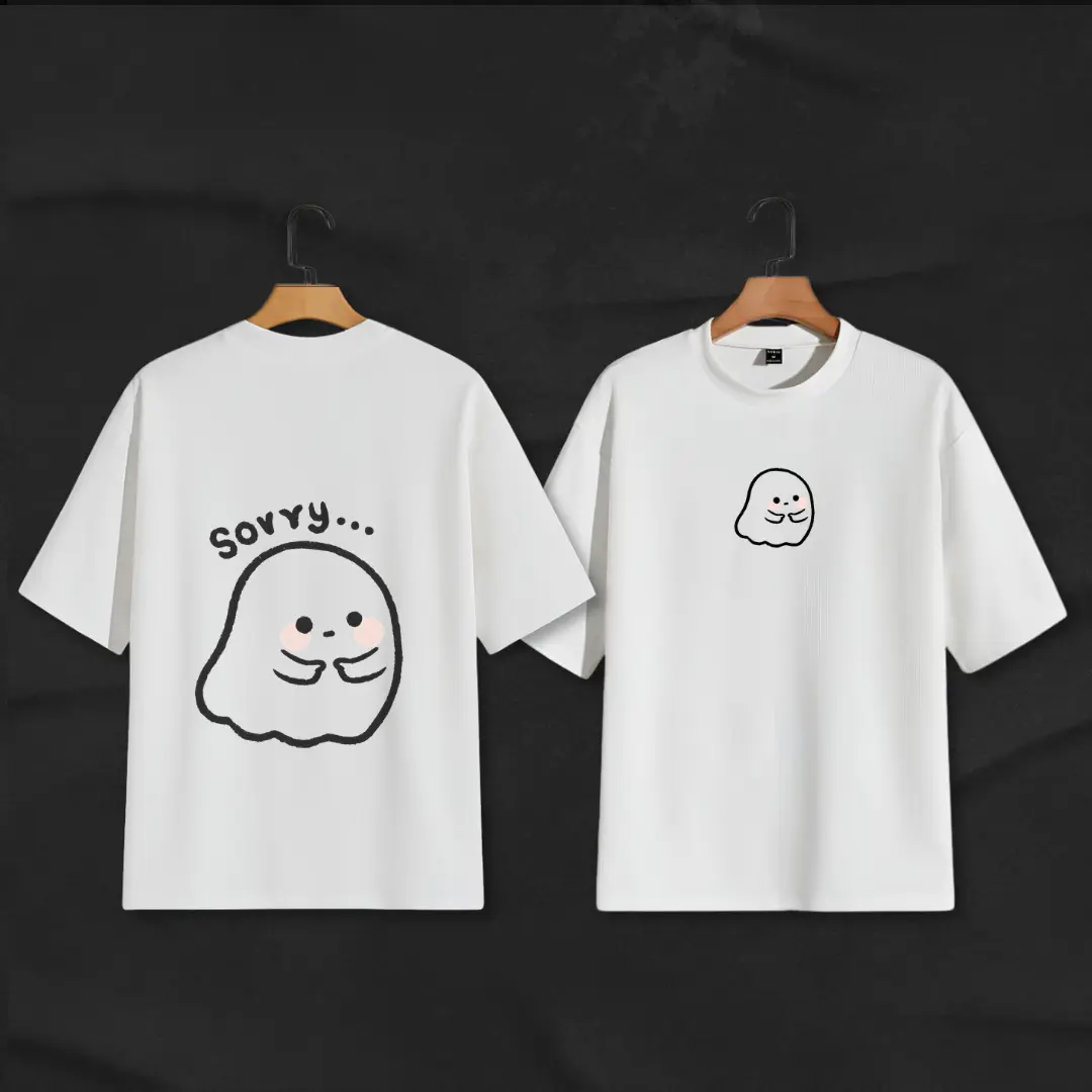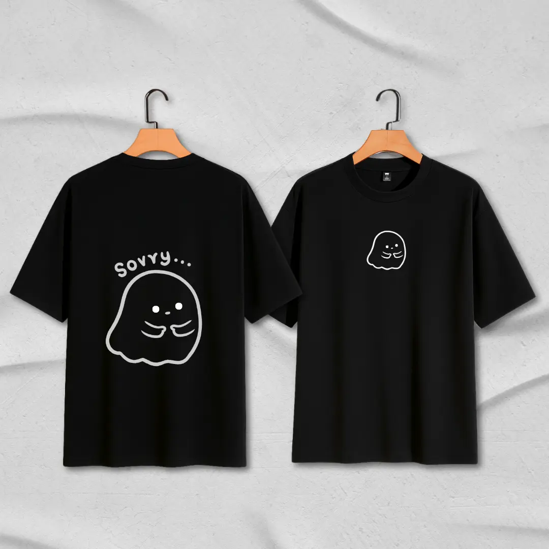 The SORRY GHOST tee is a lovable blend of awkward charm and comfy fashion. Featuring a bashful little ghost with a “Sorry…” bubble, it’s the perfect design for introverts, overthinkers, or anyone who’s ever apologized for apologizing.