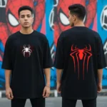 You don’t need a costume to feel powerful. This tee brings streetwear edge and superhero symbolism together with sharp contrast and bold attitude. The front features a white spider spun into a red web, quietly commanding attention. Turn around, and a blazing red emblem takes over the back — a symbol of instinct, strength, and a reminder that power doesn’t have to be loud.